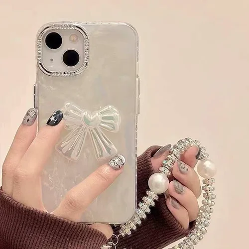 قاب آیفون پاپیون صدفی همراه با اویز دیاموندی
