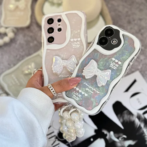 قاب آیفون Ribbon Love همراه با بند مرواریدی