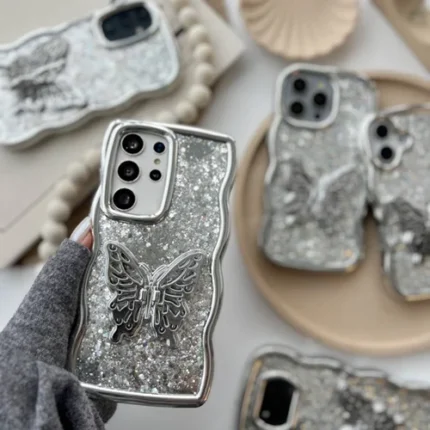 قاب سامسونگ کرومی پروانه و قلب صورتی