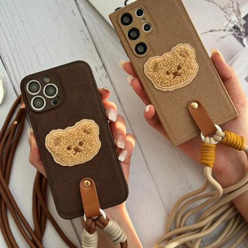 قاب موبایل آیفون خرس دوست داشتنی محافظ لنز + بندست