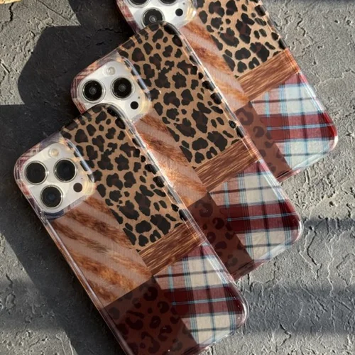 قاب موبایل آیفون پلنگی چهارخونه بافتنی