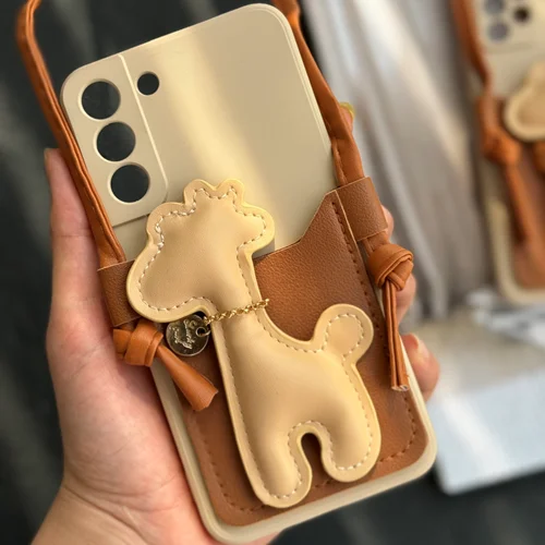 قاب موبایل سامسونگ زرافه مینیمال چرمی جاکارتی و آویز بلند محافظ لنزدار