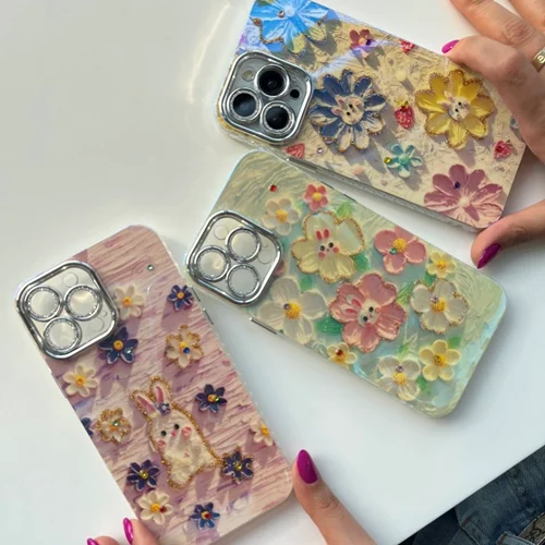 قاب گوشی آیفون آبرنگی گل خرگوشی