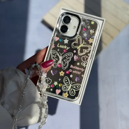 قاب گوشی آیفون نقاشی پروانه آینه ای با آویز
