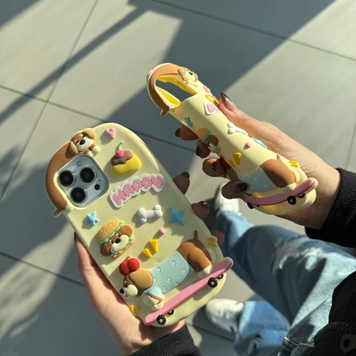 کاور گوشی آیفون cute dog به همراه جاکارتی و بند دستی