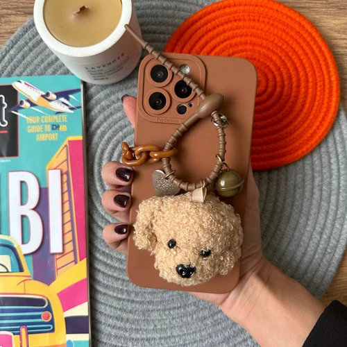 قاب گوشی آیفون سگ پودل قهوه ای به همراه آویز