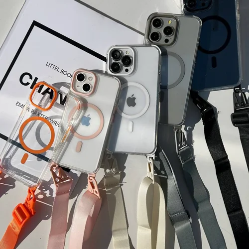 قاب گوشی آیفون مگ سیف به همراه بند کراس رنگ نارنجی