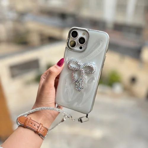 قاب گوشی آیفون پاپیون دیاموند با بند ژلاتینی و محافظ لنز نگینی
