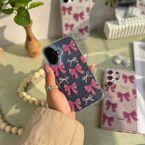 قاب گوشی آیفون پاپیون صورتی اکلیلی پشت طلق