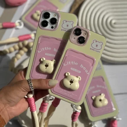 قاب موبایل آیفون جاکارتی با بند دو قلاب خرس کوچولو