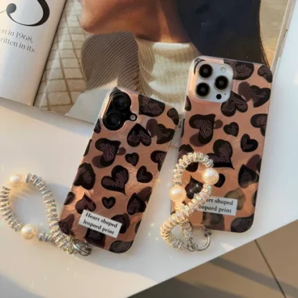 کاور گوشی آیفون Leopard Heart همراه با بند توپی