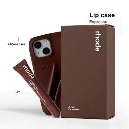 قاب گوشی آیفون rhode قهوه ای همراه با لیپ گلاس قهوه ای