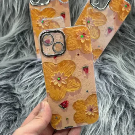 کاور موبایل آیفون گل هلوگرامی نگینی برجسته