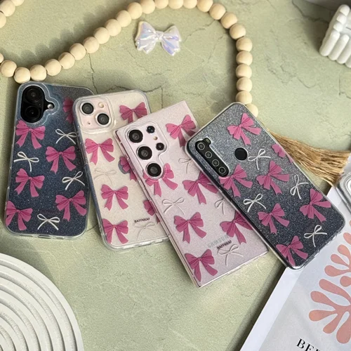 قاب گوشی سامسونگ پاپیون صورتی اکلیلی پشت طلق