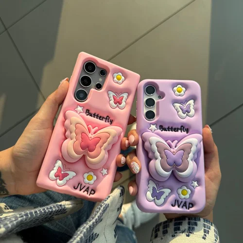 قاب گوشی سامسونگ پروانه صورتی و بنفش سیلیکونی پاپ سوکتی