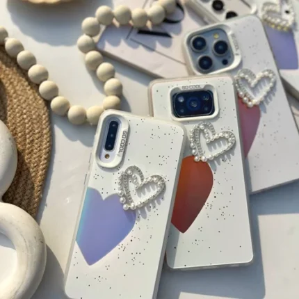 قاب سامسونگ کرومی پروانه و قلب صورتی