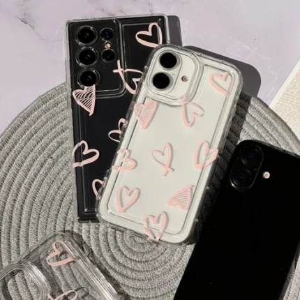 قاب گوشی سامسونگ شفاف قلب صورتی