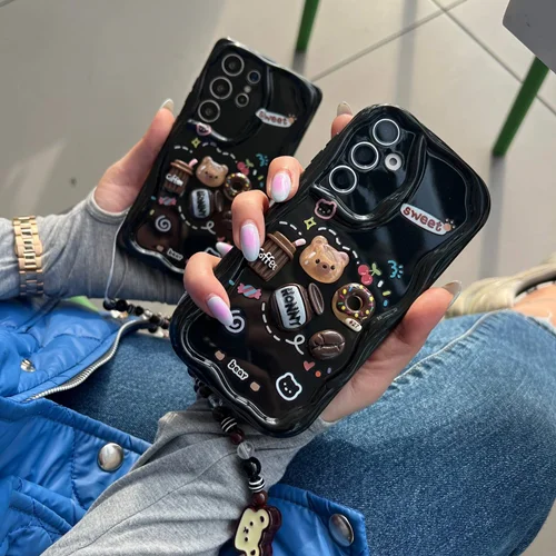 قاب گوشی سامسونگ sweet bear همراه با آویز شکلاتی