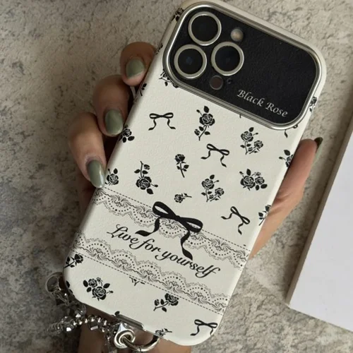 کاور آیفون بلک رز پاپیون ریز مشکی + بند پاپیون نگین دار