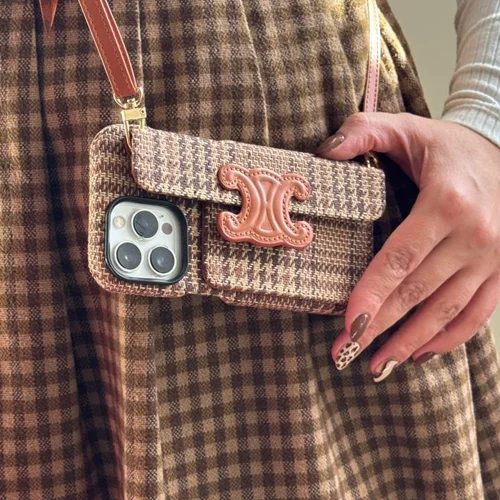 کاور موبایل آیفون سلین استریپ پارچه ای قهوه ای جاکارتی + بند بلند