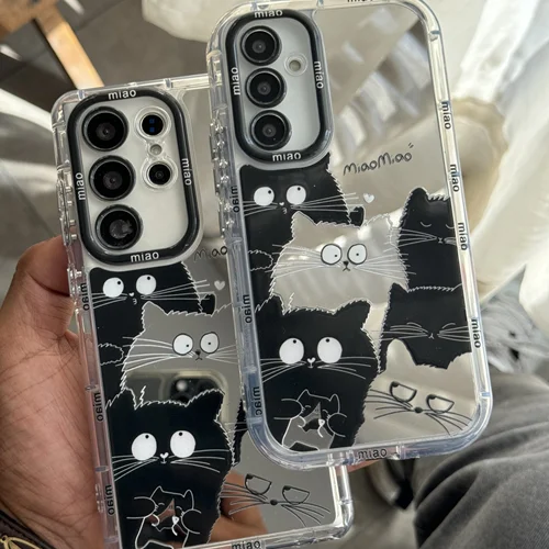 کاور موبایل سامسونگ گربه بلک اند وایت آیینه ای