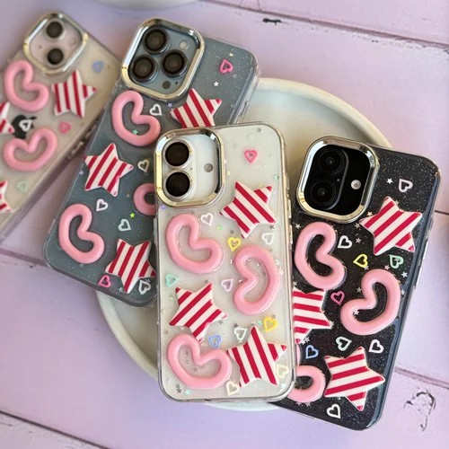 کاور گوشی آیفون قاب آبنبات ستاره و قلب برجسته