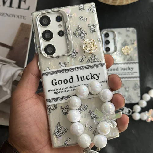 کاور گوشی سامسونگ گل شانس صدفی + بندست