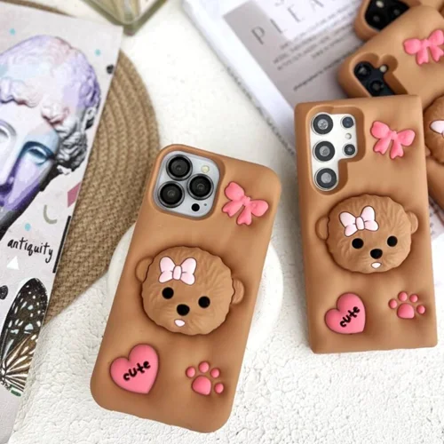کاور گوشی آیفون cute dog به همراه جاکارتی و بند دستی